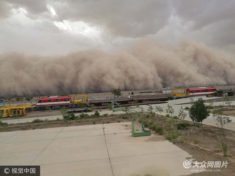 2日17時34分,內蒙古阿拉善盟額濟納旗突遭強沙塵暴襲擊。滾滾黃沙步步逼近,不一會就覆蓋了全部天空,空氣中是沙、是土已分不清。街上行人寥寥無幾,公眾紛紛回家關門閉窗預防。