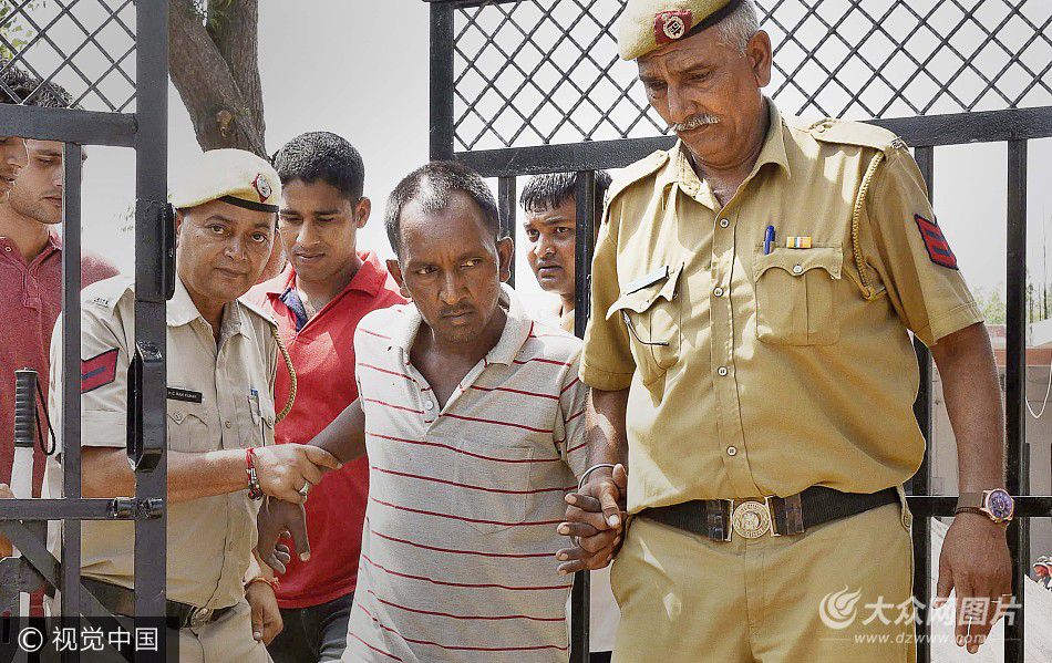 當地時間2017年9月9日,印度古爾岡市,警方逮捕殺害7歲男童的嫌犯Ashok。8日早上,古爾岡市瑞安國際學校一名2年級的7歲小男孩被發現倒在學校廁所外的血泊中,喉嚨被割斷,現場還留下一把刀。