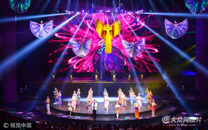 2017年10月1日,國(guó)慶長(zhǎng)假期間,河南省濮陽(yáng)市水秀龍珠館舉行精彩大型水上雜技《水秀》。表演的空中飛人、空中跳水、空中飛車、高空獨(dú)輪綱絲騎車、籠中摩托飛騎等節(jié)目,其驚險(xiǎn)刺激令人驚詫不已。觀眾身臨其境,如夢(mèng)如幻,潮起潮涌,雜技演員驚險(xiǎn)表演的動(dòng)作,讓現(xiàn)場(chǎng)的觀眾發(fā)出陣陣的掌聲,場(chǎng)面非常震撼。