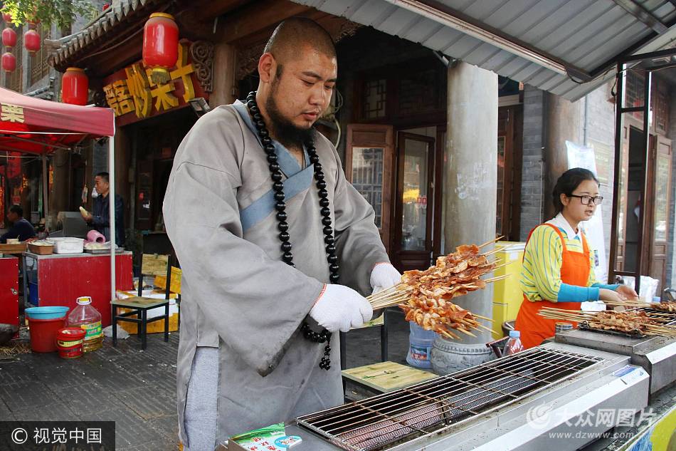 山東青州:小伙扮魯智深賣肉串,日賺近萬元