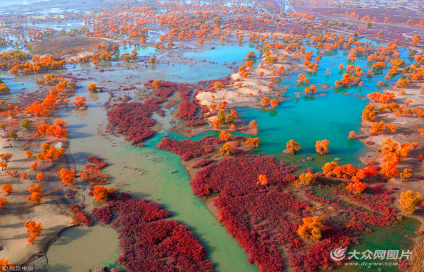 塔里木"極旱荒漠"現五彩斑斕秋景 胡楊林一片金黃