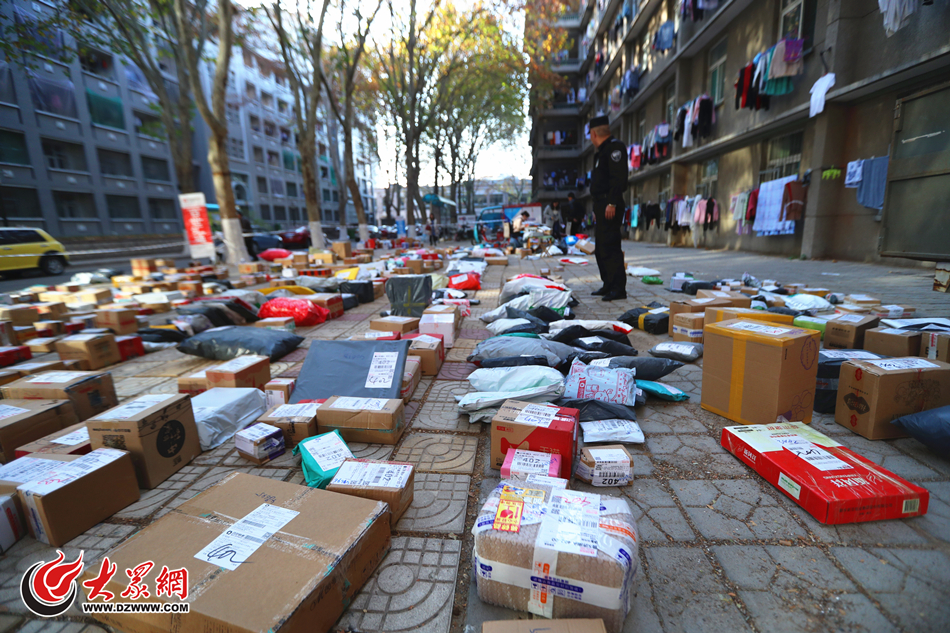 大眾網濟南11月14日訊 今天是“雙十一”過后第三天,來自網購的大量快遞已經涌入濟南各大高校 ,在山東師范大學一宿舍樓前,擺放了近一百平米的快遞件在等待學生領取。據快遞工作人員介紹,不僅收件量可達數千,一些兼職做電商的學生也在“雙十一”大賣,這幾天僅山師宿舍樓前每天的發件量也在上千。(大眾網、山東24小時記者 亓翔)