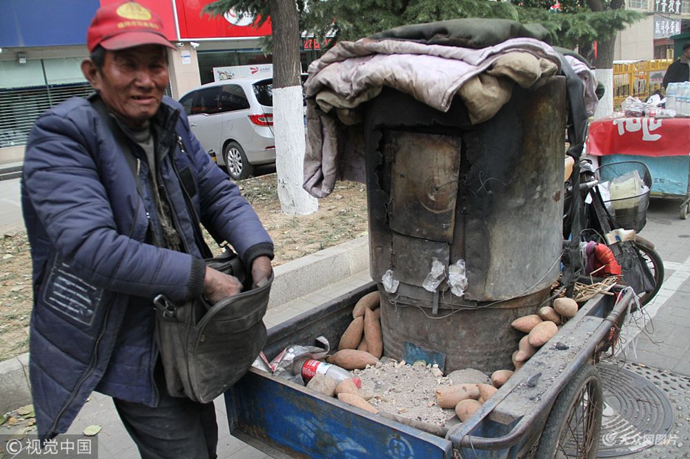 2017年11月19日,在山東濟南和平路與山師東路交叉口位置,一位64歲、雙手殘疾的老人,每天靠賣烤紅薯賺錢糊口。由于手不方便,生意不是太好,為攢錢等候30多年前離家出走的妻子、能重新有個家,他足足在大街上住了4年。