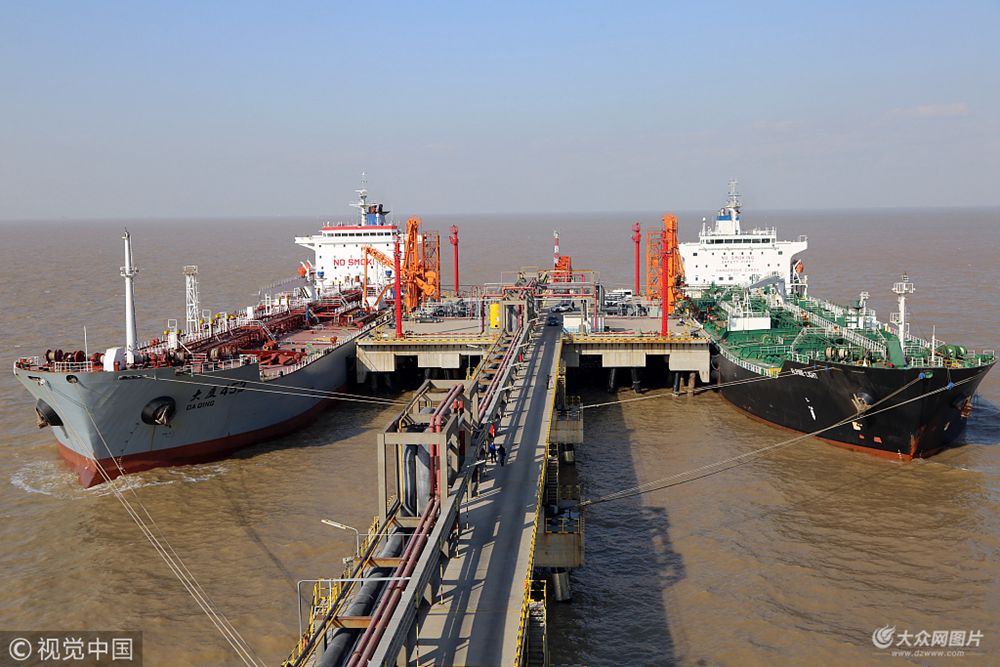2017年11月30日上午,在山東東營港的中海油2×5萬噸級液體化工品泊位,“大慶453”輪和外籍輪“高山之光”正在靠泊卸載。