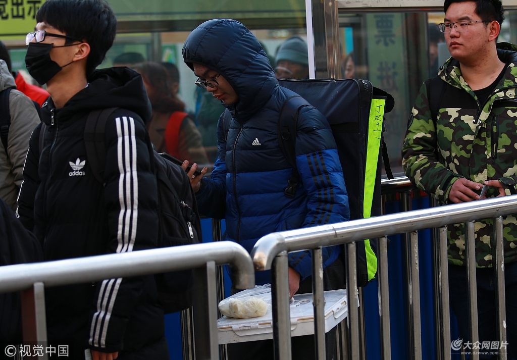 藝考大幕即將拉開(kāi) 考生寒風(fēng)中拎包子趕火車(chē)