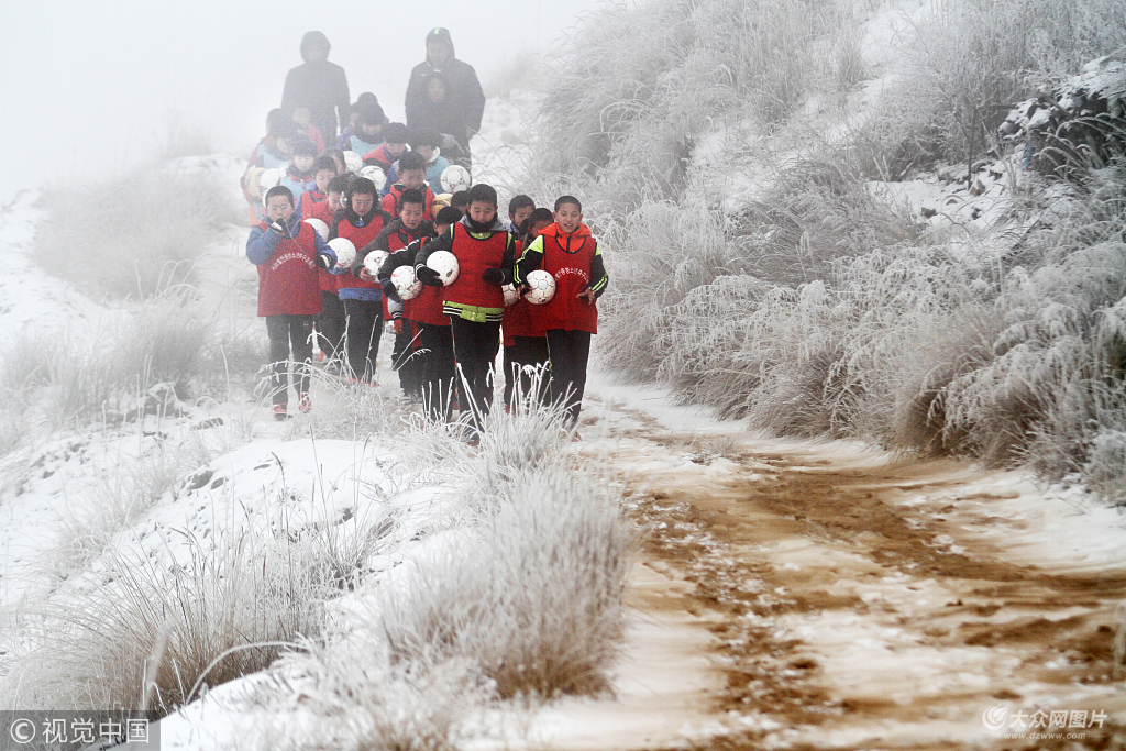 大山之巔的中連川小學,位于中國黃土高原的蘭州市榆中山區。即便學校地處海拔2300米,常年干旱少雨,自然條件惡劣,每年11月過后,北山氣溫最低低至20度,但是孩子們仍然堅持冒雪集訓,“走出大山,以后代表中國隊參加比賽”是他們的夢想。這個山里娃足球隊2017年8月代表甘肅省參加全國U11冠軍杯賽。第一次參加全國性比賽的山里孩子們,常常面對比自己高出一頭的城里孩子,但他們絲毫不膽怯。來自西北大山里的孩子們“一鳴驚人”,在U11年齡組的比賽中獲第7名。