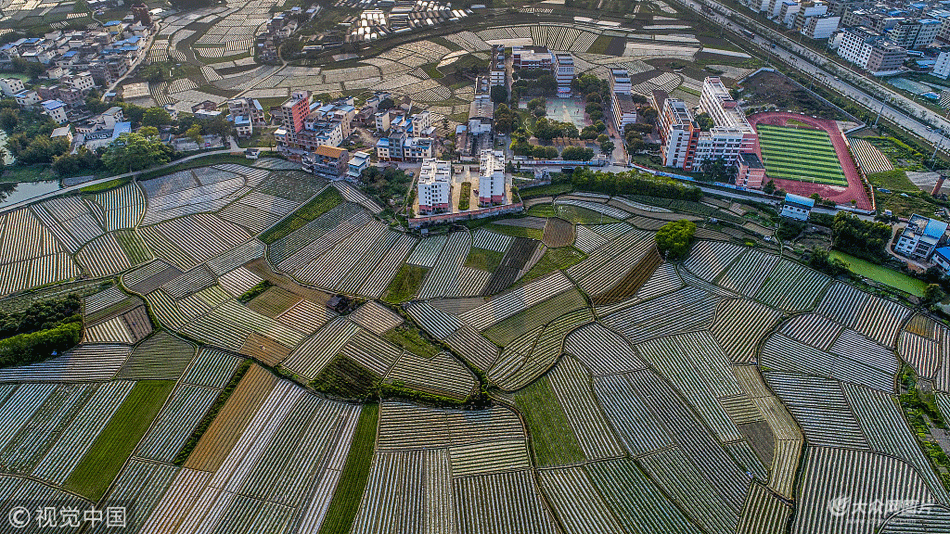 2018年3月10日,廣西南寧氣溫10度至21度,已逐步進入溫暖的春天,但早晚氣溫還是相對較低。廣西南寧興寧區五塘鎮菜地里拉上薄膜保溫、保濕。連片海洋式整齊的薄膜覆蓋田地,在空中組成美麗的圖畫,為春天的大地畫上華彩的樂章。