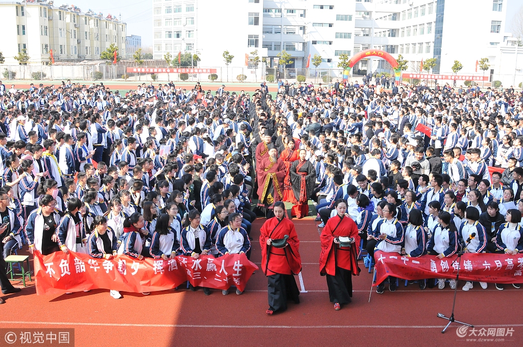 2018年3月13日,山東省濟(jì)寧市、鄒城市第一中學(xué),距高考倒計時86天。2018屆成人禮暨高考沖刺誓師大會隆重舉辦。