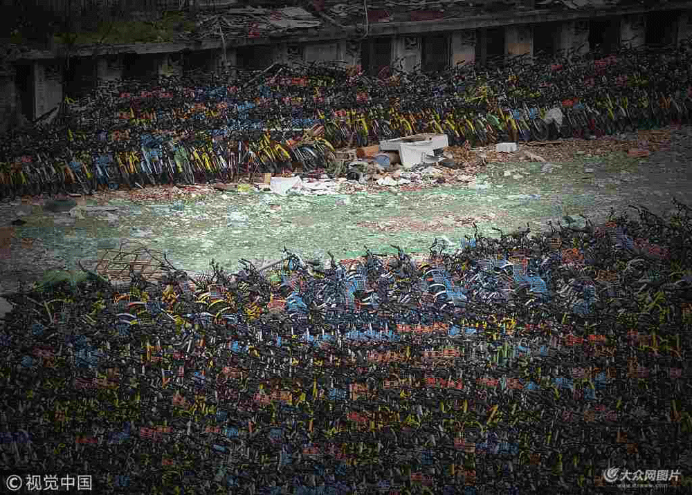 2018年3月26日,福州,在福州市區(qū)一處正在進(jìn)行拆遷的工地上,停滿了五彩斑斕、各種顏色的共享單車,密密麻麻,蔚為壯觀。