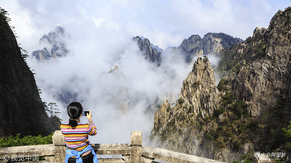 安徽黃山:云海縹緲 青松挺拔
