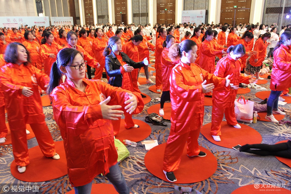 2018年3月31日,在山東濟南,500余名孕婦在一個老師的指導下打太極,現場十分壯觀。