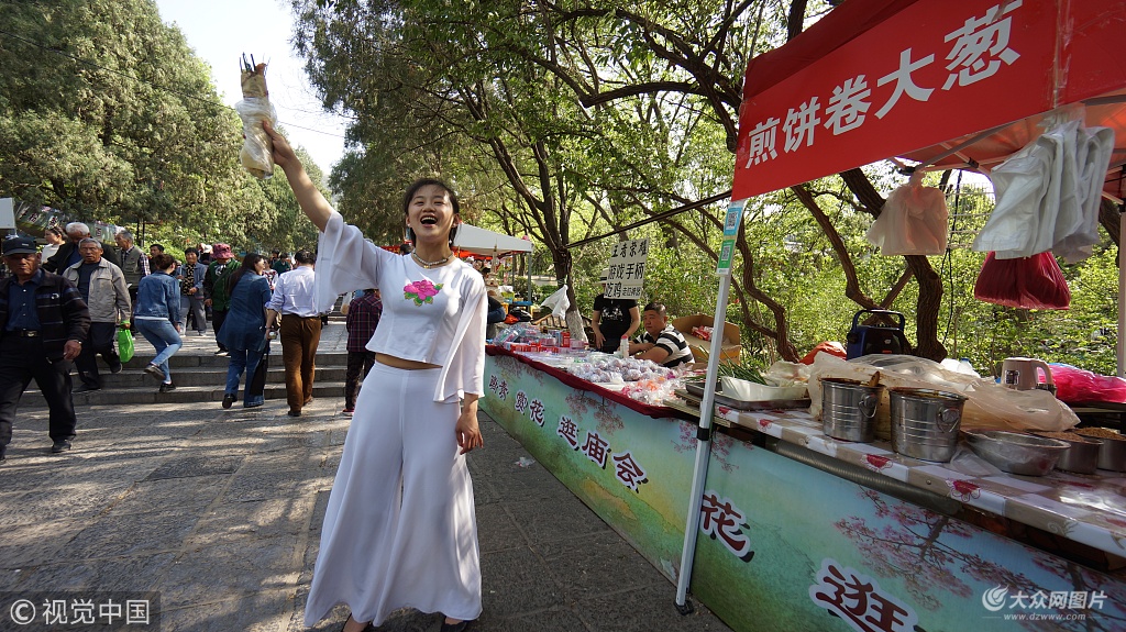 2018年4月18日,濟南,90后女孩牛紅嶺給人的第一印象活潑開朗,三月三濟南千佛山廟會她幫著哥哥賣煎餅,廟會布局在千佛山山道兩側數百家商戶爭攔顧客。哥哥賣的煎餅卷大蔥五元一份,如何讓游客把目光投放在自己家的煎餅攤上呢?喜歡柔術的牛紅嶺在自己家的攤位前鋪上毯子索性表演起來,一時間圍滿了游客。牛紅嶺很有生意頭腦一看顧客來了便吆喝起來“賣煎餅了,好吃不貴五元一份”,這一天下來竟然賣出600份煎餅獲利3000元。