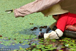舌尖美味西湖莼菜開采 村民一天趴船十多小時