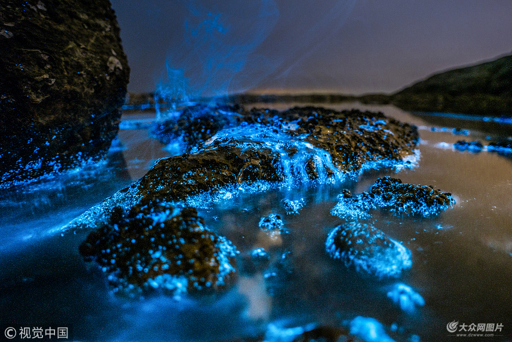 2016年6月13日,遼寧省大連市。大連甘井子區小黑石海域出現"熒光海"景象。遠遠地看,猶如藍色星空墜落海洋,美到令人窒息。