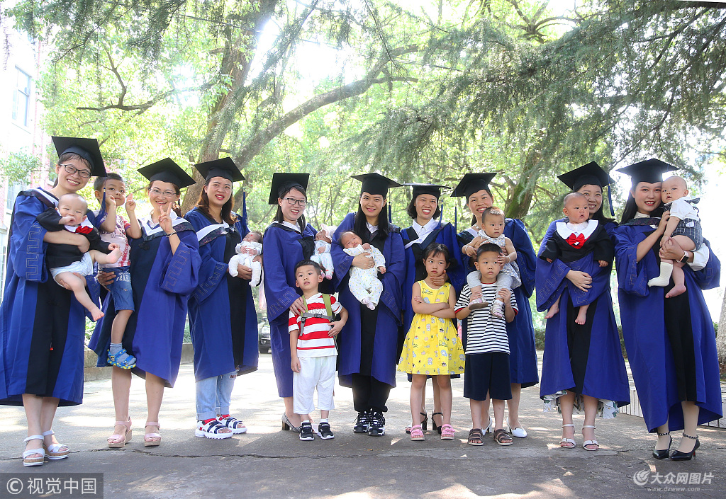 2018年6月10日,湖南省衡陽市南華大學(xué)護(hù)理學(xué)院舉行2018屆畢業(yè)生學(xué)位授予典禮,不少畢業(yè)生的孩子和家長都來到現(xiàn)場參加他們的畢業(yè)禮,一起感受他們的榮耀時刻。在本屆20名碩士畢業(yè)生中,有10位媽媽畢業(yè)生,孩子還在肚子里的時候就成為了媽媽的陪讀,有二位媽媽畢業(yè)生還生了二寶。媽媽畢業(yè)生們求學(xué)、生娃兩不誤,成為了人人羨慕的人生贏家。在今天的畢業(yè)禮上,這12個寶寶陪讀生也來到畢業(yè)禮現(xiàn)場一起參加媽媽的畢業(yè)禮,場面幸福滿滿、溫馨動人,很好地詮釋了幸福是奮斗出來的時代精神。