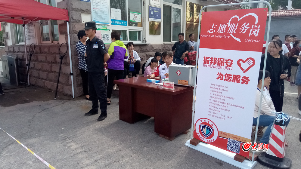 大眾網6月12日訊 濟南中考期間,山東振邦保安高新分公司做好安保工作,設立志愿服務崗,成立青年志愿者服務隊,給考生準備2B鉛筆,備有外用藥、防暑物品,并配備車輛以應對緊急事件,全方面為考生、家長提供服務。(大眾網記者 李兆輝