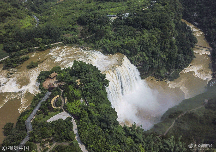 近期,貴州持續(xù)不斷的降雨,黃果樹(shù)瀑布上游水源豐盛,給黃果樹(shù)瀑布聚集了巨大的水量。條條溪流匯入河,黃果樹(shù)上游的白水河水流川急,在梯形瀑布處水勢(shì)滔滔,壯觀的黃果樹(shù)瀑布一瀉百米,更是顯示氣壯山河的的壯麗之美。在現(xiàn)場(chǎng),不少來(lái)自江蘇的游客感慨地說(shuō),來(lái)了幾次黃果樹(shù),奔騰不息的水流氣勢(shì)磅礴,百看不厭。圖片作者:吳東俊/視覺(jué)中國(guó)