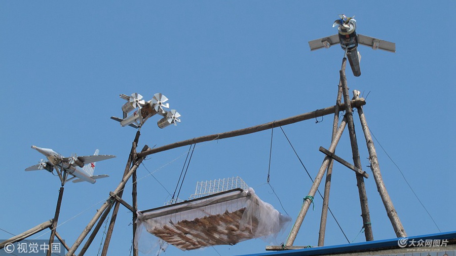 2018年6月24日,山東省日照市一家農家樂海鮮店,店主人在平房頂上,安裝了3架“山寨”F35戰斗機,在微風中,三架山寨戰斗機的“螺旋槳”呼呼作響,而且機身還能左右搖擺,吸引了不少過往居民駐足觀看。