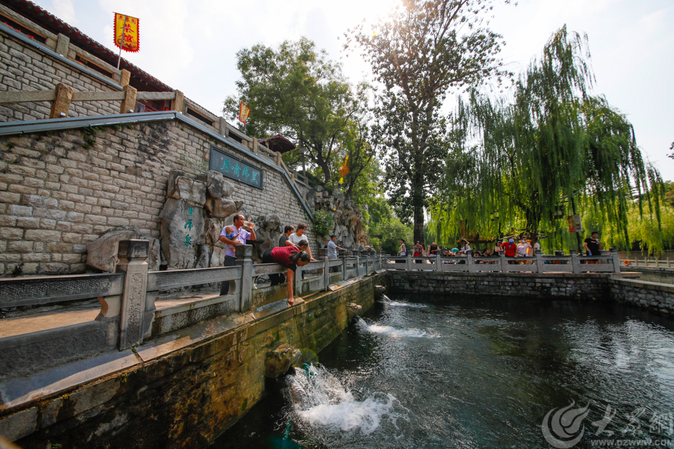 濟南高溫,市區在黑虎泉乘涼的市民最多。 大眾網記者 畢勝