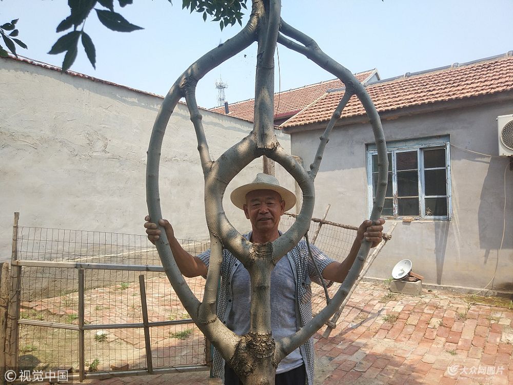 有的像寶葫蘆,有的像元寶,有的像盤龍,有的像花架……在無棣縣車王鎮(zhèn)坡莊村一片10多畝樹園里,生長著造型奇特、外觀各異的“藝術(shù)樹”,有的樹齡已經(jīng)10年,也有今年剛剛培育的藝術(shù)樹苗,奇特的造型,讓人眼前一亮。