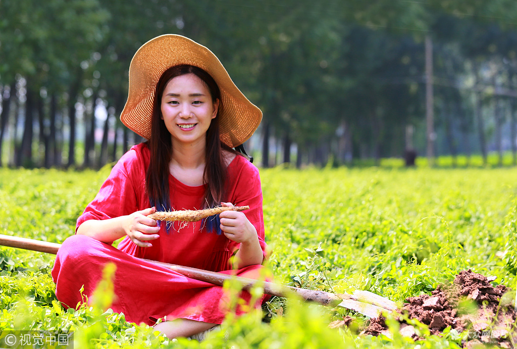 2018年7月24日,河南焦作,驢友一直在推著王瑤往前走,他們幫她拓展銷售渠道,也建議她豐富產品種類。在最近的一次旅途中,一個驢友就成功撮合了王瑤跟另一家大的物流銷售平臺的合作。同時,驢友們“逼著”她的團隊開發了新的產品,像山藥顆粒粉、漿、鍋巴、薯片、麻花、飲品、懷菊花等精加工系列產品,拉長特色農產品的產業鏈。圖為王瑤為鐵棍山藥代言,更愿意坐在山藥地里拍照。