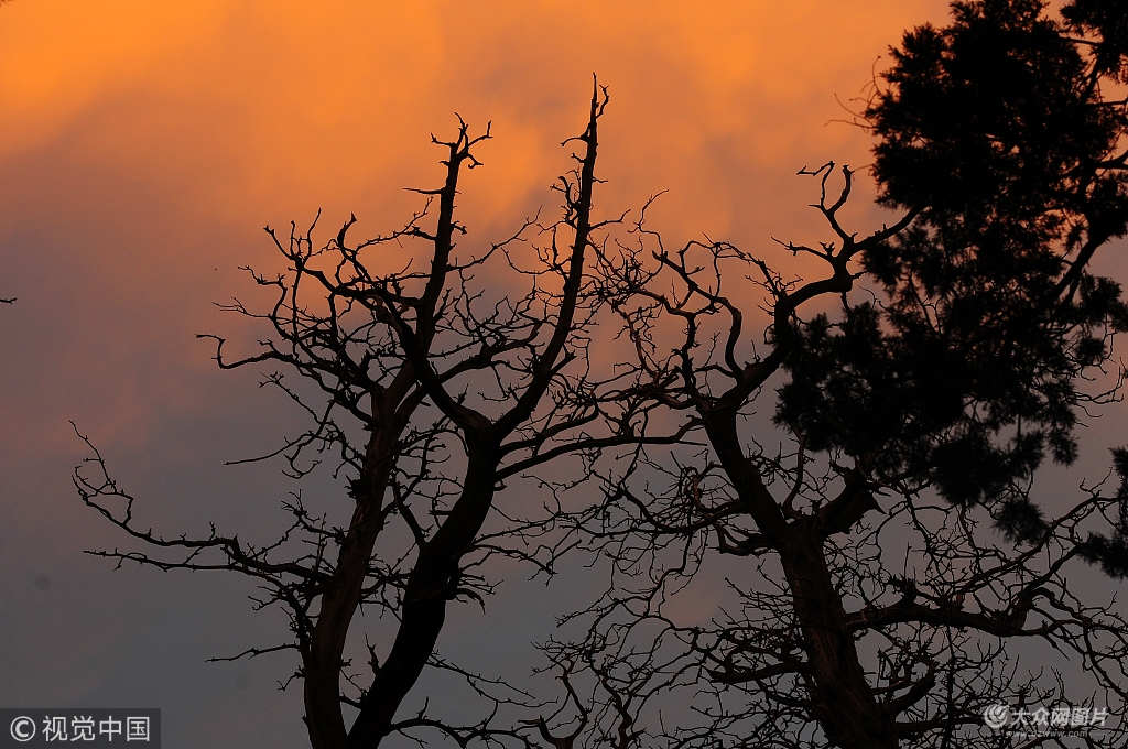 2018年7月28日,山東省濟(jì)寧市,孟廟迎來(lái)火燒云天氣。