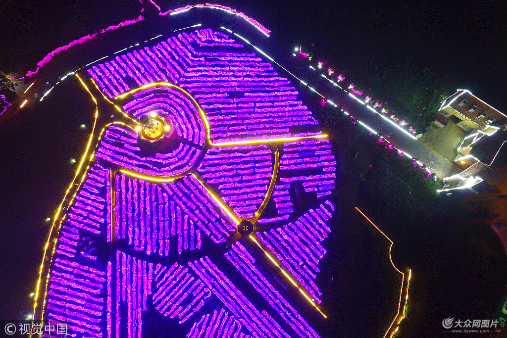 2018年7月31日晚,江蘇南京,江寧區(qū)谷里街道薰衣草莊園上演北歐藝術(shù)燈光節(jié),“玫瑰燈花海”“百米時光隧道”等主題燈光造型和精彩節(jié)目吸引了眾多游客。