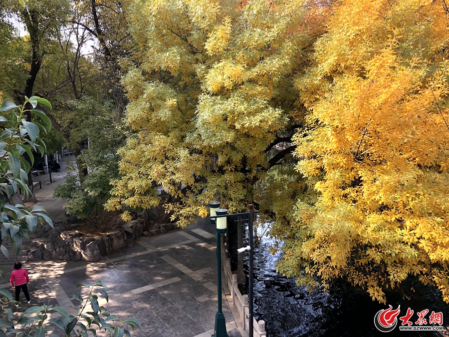 大眾網濟南10月30日訊 時值深秋,秋高氣爽。濟南護城河兩岸的樹葉漸漸變黃,在黑虎泉北路與興華街交匯處,一棵老樹滿身“黃金甲”,美不勝收。(大眾網-山東24小時記者李金珊)