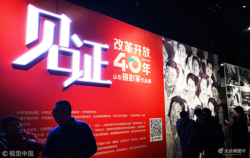 2018年11月17日,觀眾在山東省博物館觀看“見證——山東攝影家改革開放40周年作品展”。
