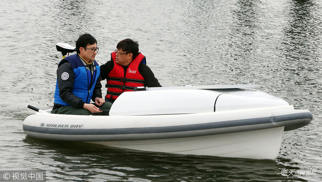 2018年12月6日,韓國釜山,釜山大學(xué)土木工程系教授研究組在釜山北區(qū)洛東江展示了礦泉水驅(qū)動(dòng)船舶的技術(shù)。