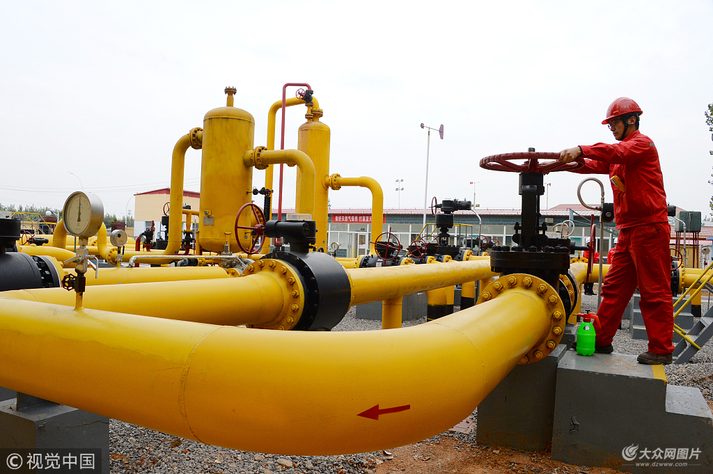2018年10月21日,山東淄博,中國石化天然氣山東管道公司淄博管理處輸氣站崗位員工在操作天然氣外輸運行裝置。