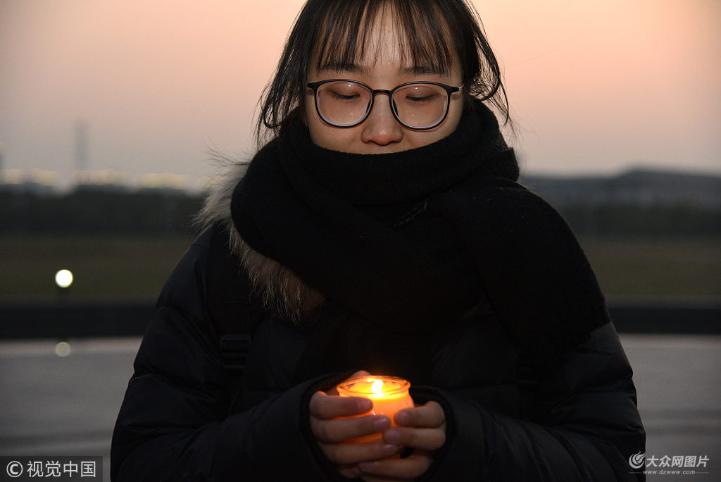 2018年12月12日晚,南京,大學生們點燃燭光,寄托哀思。