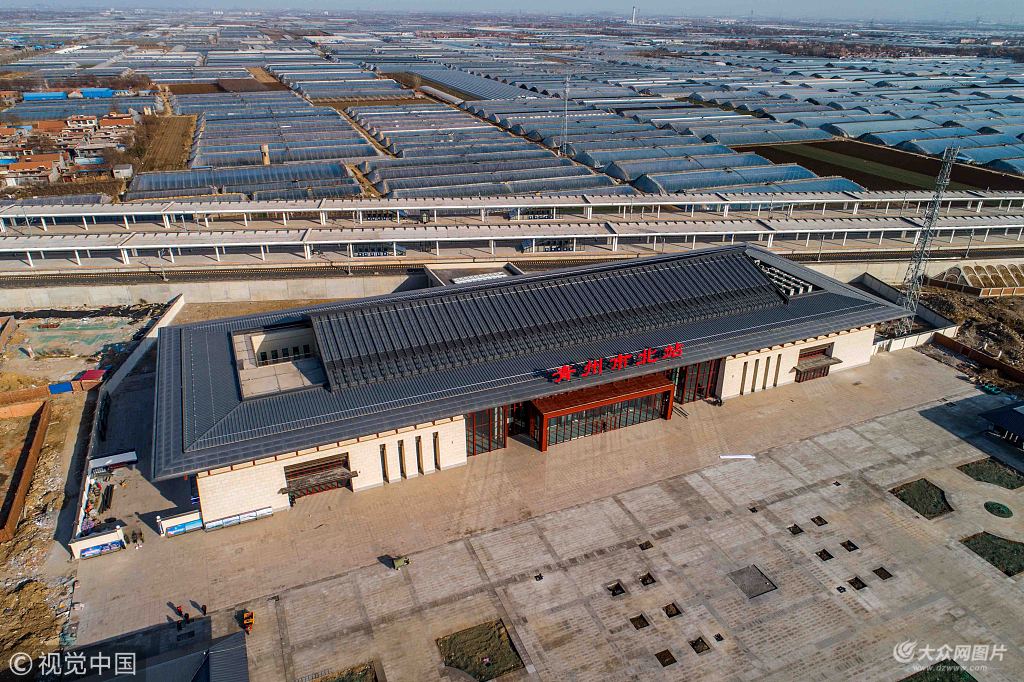 2018年12月23日,山東濰坊,航拍的濟青高鐵青州北站。