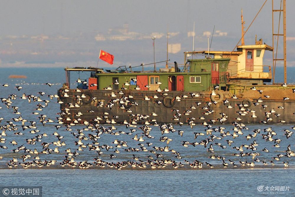 青島:天文大潮日 候鳥翔集膠州灣形成壯觀“鳥潮”