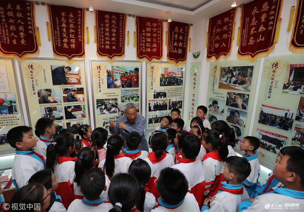 2018年10月24日,山東淄博,在李振華事跡展覽館里,李振華現身說法講述親身經歷的故事,引導孩子們珍惜來之不易的學習機會。