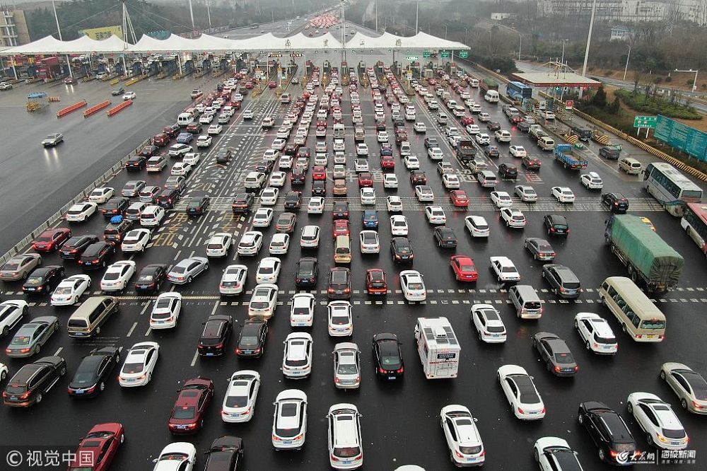 2019年1月30日,大批車輛途經南京二橋高速收費站,由南向北駛過長江。春節將至,各地高速公路車流“看漲”。 泱波(江蘇分社)/中新社/視覺中國