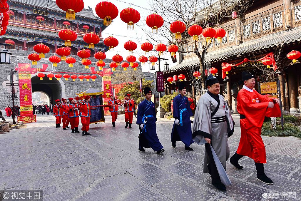 2019年2月4日,當(dāng)日是立春,山東省濰坊青州市開展民俗展演迎立春活動,知府迎春、古服展示、喜慶秧歌等傳統(tǒng)民俗活動輪番上演,喜迎春日到來。