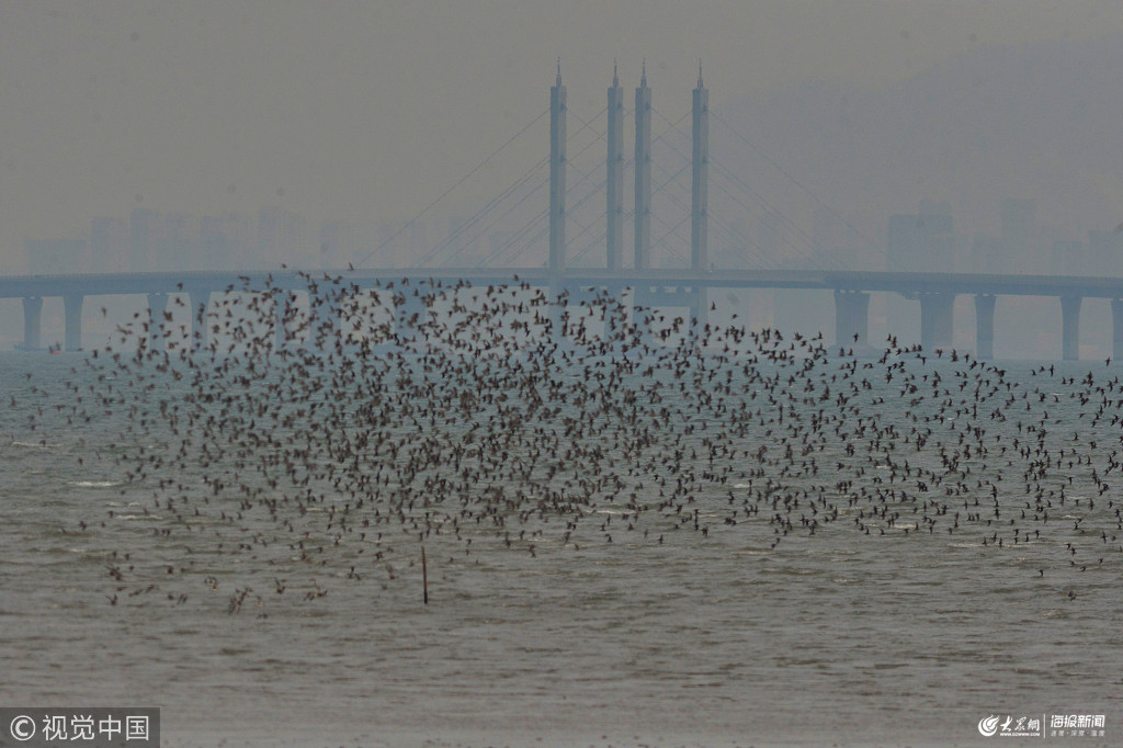 2019年2月26日,青島膠州灣國家海洋公園,“鳥潮”景觀。