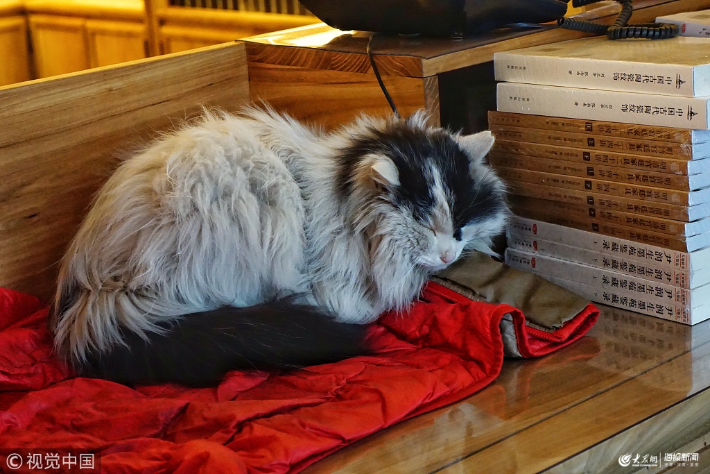 2019年3月12日,北京,故宮御貓“鰲拜”成為景仁宮·故宮書店里的“常駐”客人,同時也是書店里一道獨具特色的風景,不少市民特意為了“擼貓”而來。
