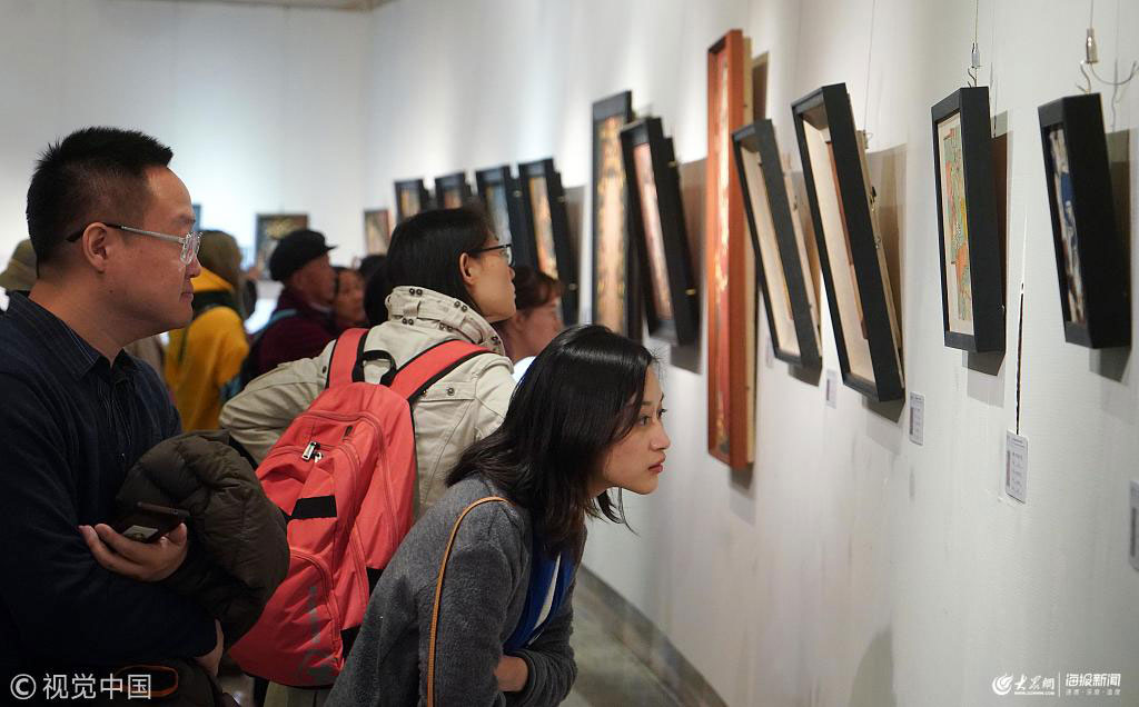 2019年3月17日,《“千年壁畫、百年滄桑——古代壁畫暨流失海外珍貴壁畫再現(xiàn)傳播與展示”巡回展覽》在北京中華世紀(jì)壇圓滿落幕。展覽共展出130余件壁畫作品。圖為觀眾欣賞展品。 張興龍(攝影部)/中新社/視覺中國
