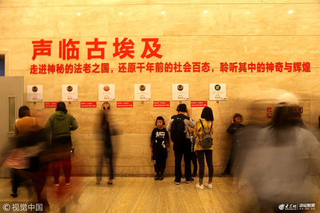 2019年4月6日,濟(jì)南。清明節(jié)假期,山東博物館迎來游客如織,市民排隊數(shù)百米一睹古埃及文物了解埃及文化。