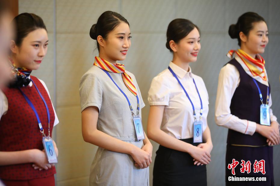 4月15日,應聘者參加空中乘務員的初試。當日,中國東方航空江蘇公司在南京啟動乘務員招聘工作,吸引了眾多帥哥美女前來競逐藍天夢。據介紹,形象好只是考官考察的一個方面,親和能力強、服務意識優、綜合素質好的應聘者更受青睞。中新社記者 泱波 攝