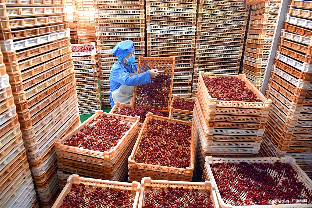 2019年6月3日,在山東省淄博市沂源縣悅莊鎮一果品加工企業,工人在加工大櫻桃。