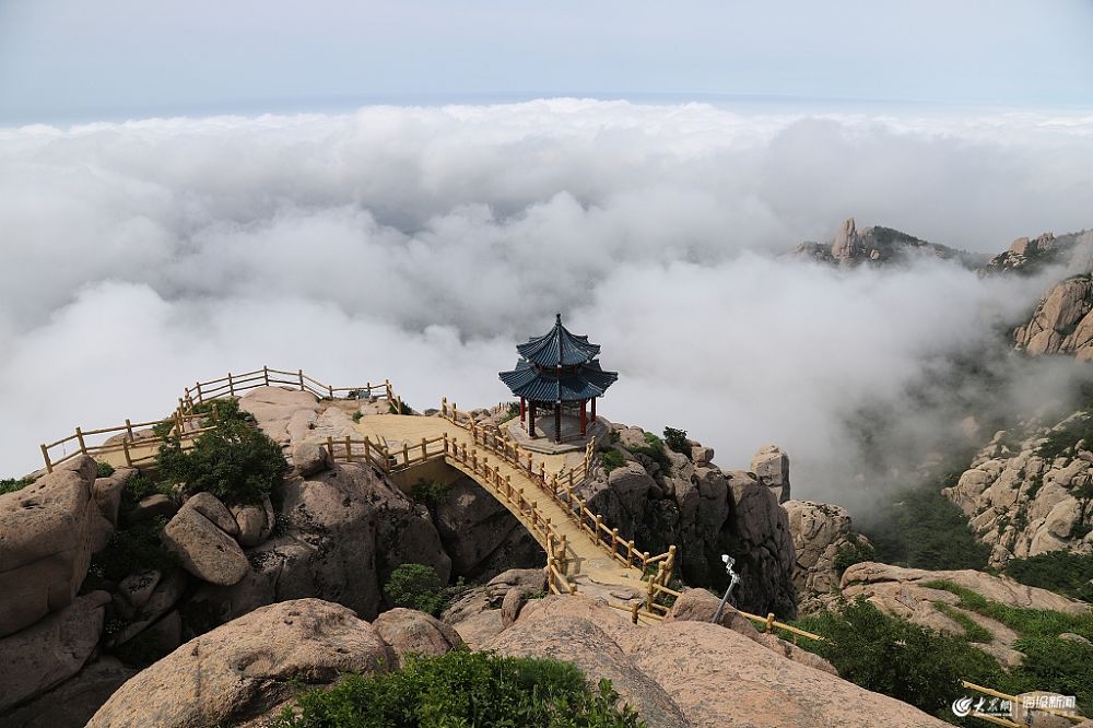 2019年6月13日,山東青島,嶗山巨峰風景區云霧繚繞,吸引了不少游客觀賞拍照。