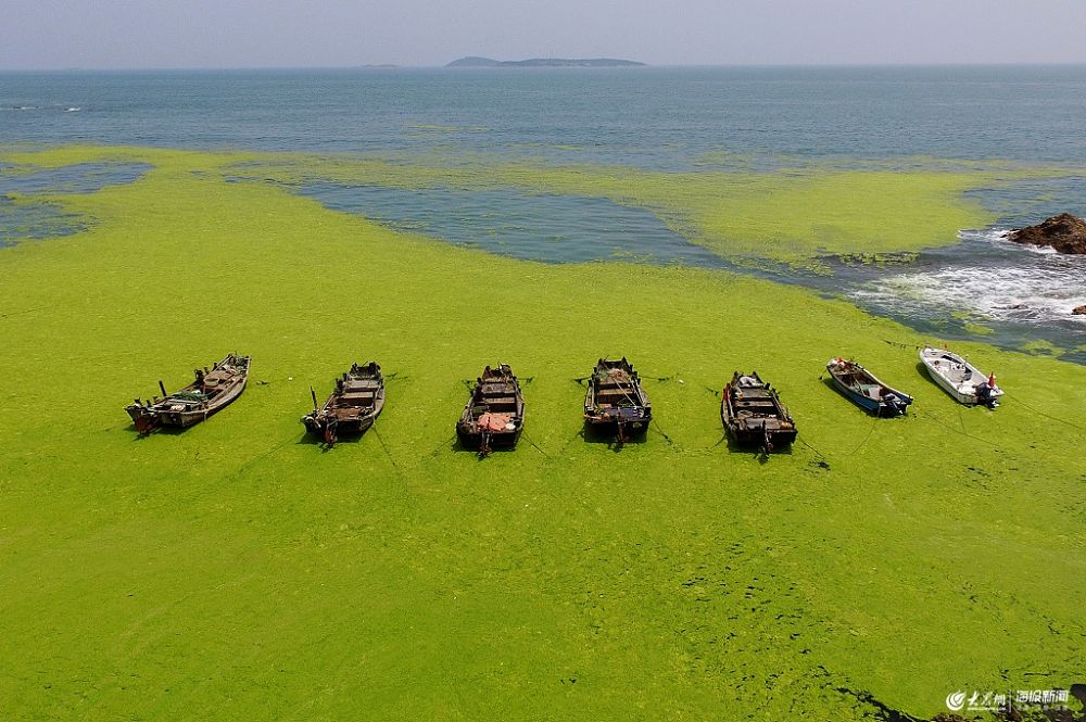 進入七月份以來,隨著海水溫度升高,青島近海海域綠潮呈爆發趨勢,滸苔分布面積約38000平方公里,覆蓋面積約413平方公里。目前青島市偏僻海域滸苔較多,各大海水浴場暫未受到影響。