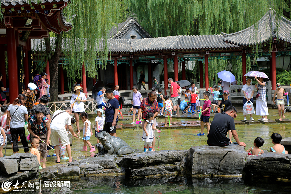 大眾網·海報新聞濟南7月31日訊(見習記者 李鴻如 董歡歡)31日上午,五龍潭公園景區內游人如織,烈日炎炎,游客們紛紛躲在樹蔭下閑坐聊天。要說還有哪個地方能讓游客們不懼烈日,那就只有公園內的“清泉石上流”親水區了,孩子和大人們在這里消暑納涼,打水槍、赤腳踩水成為孩子們最喜歡的消暑活動之一。