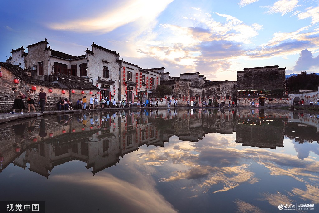2019年8月3日 安徽黃山,游客在安徽黟縣宏村風(fēng)景區(qū)游覽觀光。