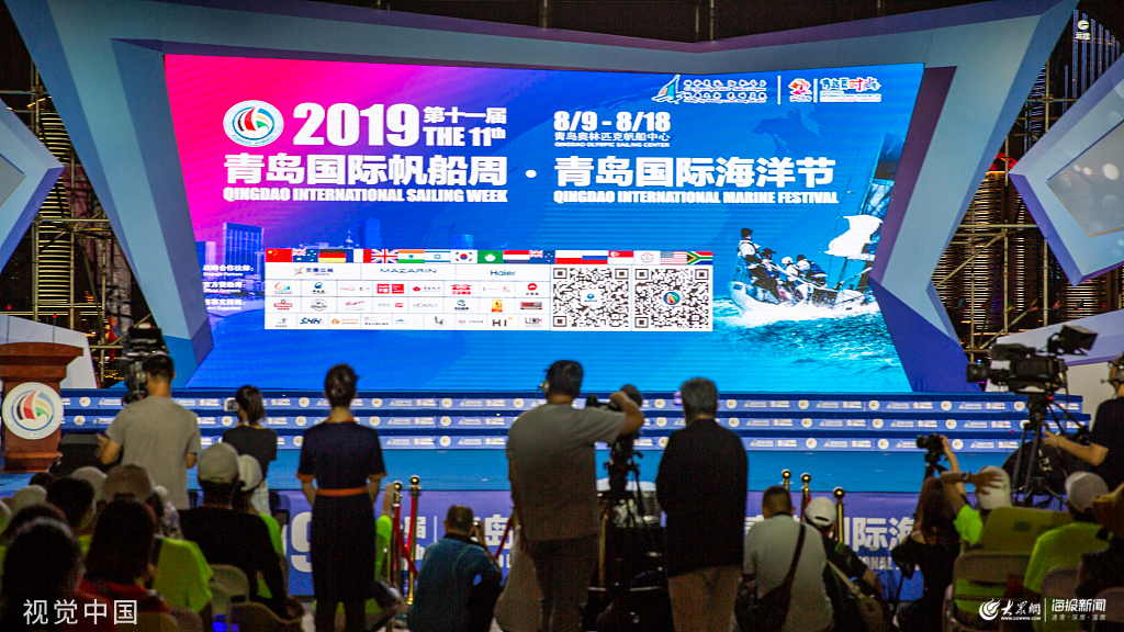2019年8月9日,2019第十一屆青島國際帆船周·青島國際海洋節(jié)在青島奧林匹克帆船中心國際會(huì)議中心前廣場開幕。現(xiàn)場圖。