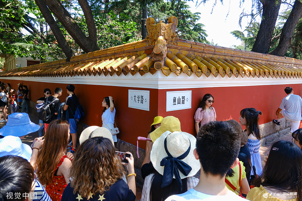 2019年8月17日,青島,位于大學路的“青島網(wǎng)紅墻”每天吸引大批游客排隊打卡拍照。