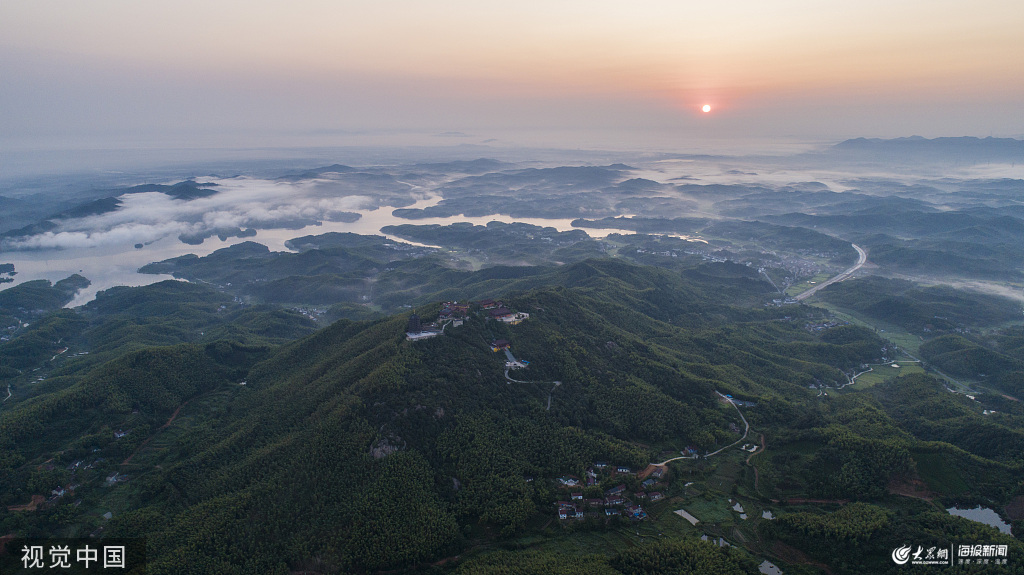 2019年8月30日,安徽宣城,航拍郎溪觀天下景區風光,山水相依,美如畫卷。